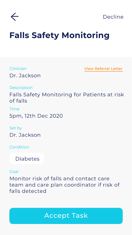 Step 2 – Patient accepts the task and connects their wearable device #