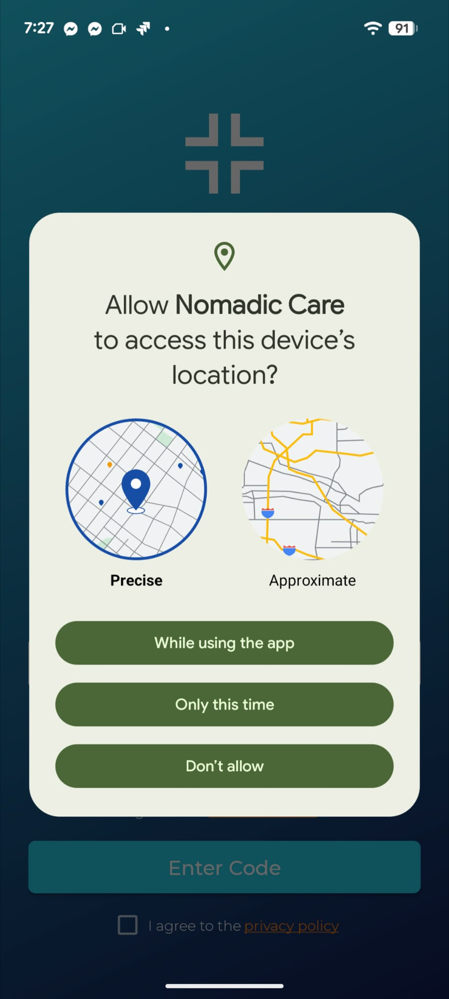 - Open the Nomadic Care app and accept any permission prompts