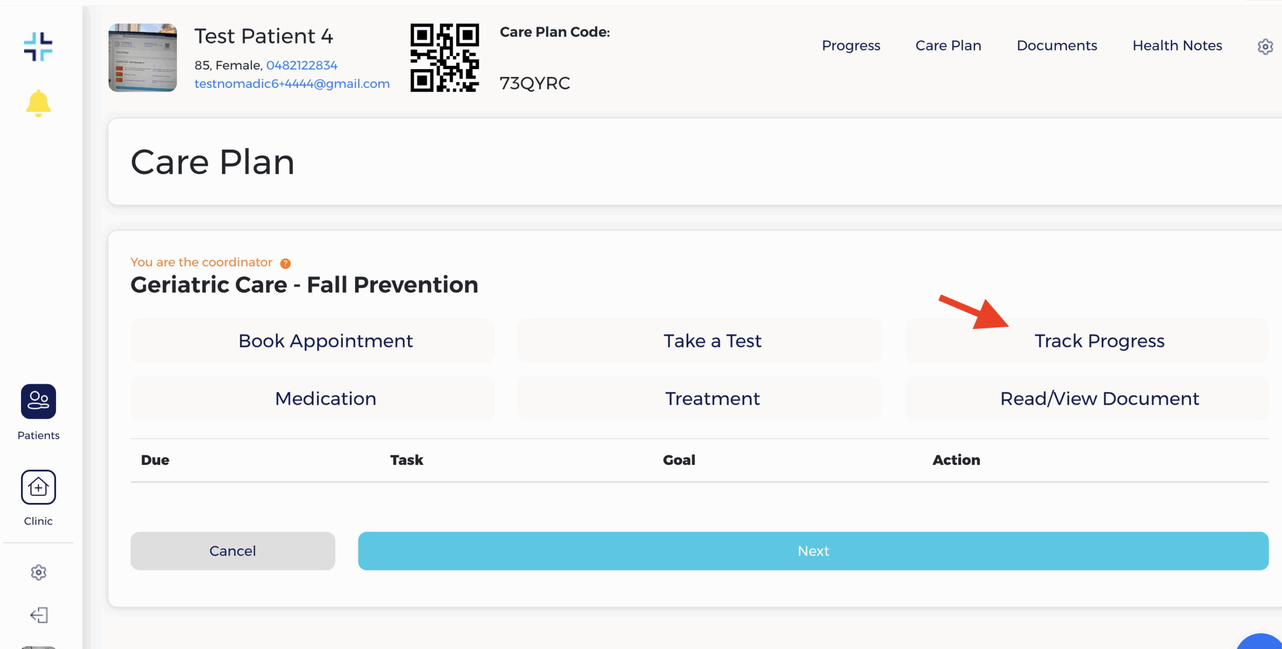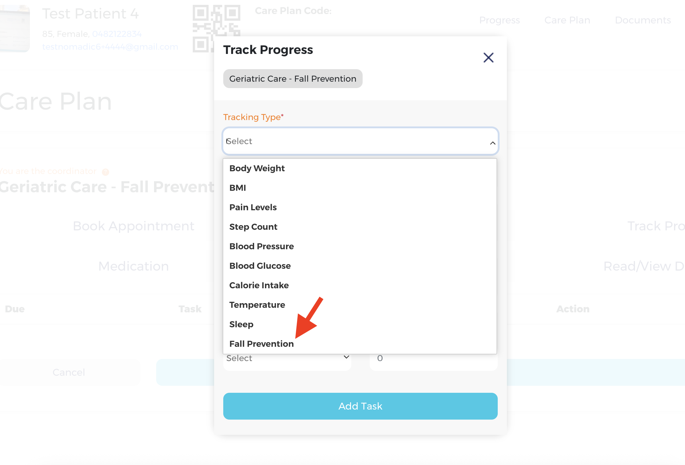 Step 1 – Setup a “Fall Prevention” Track Progress task #