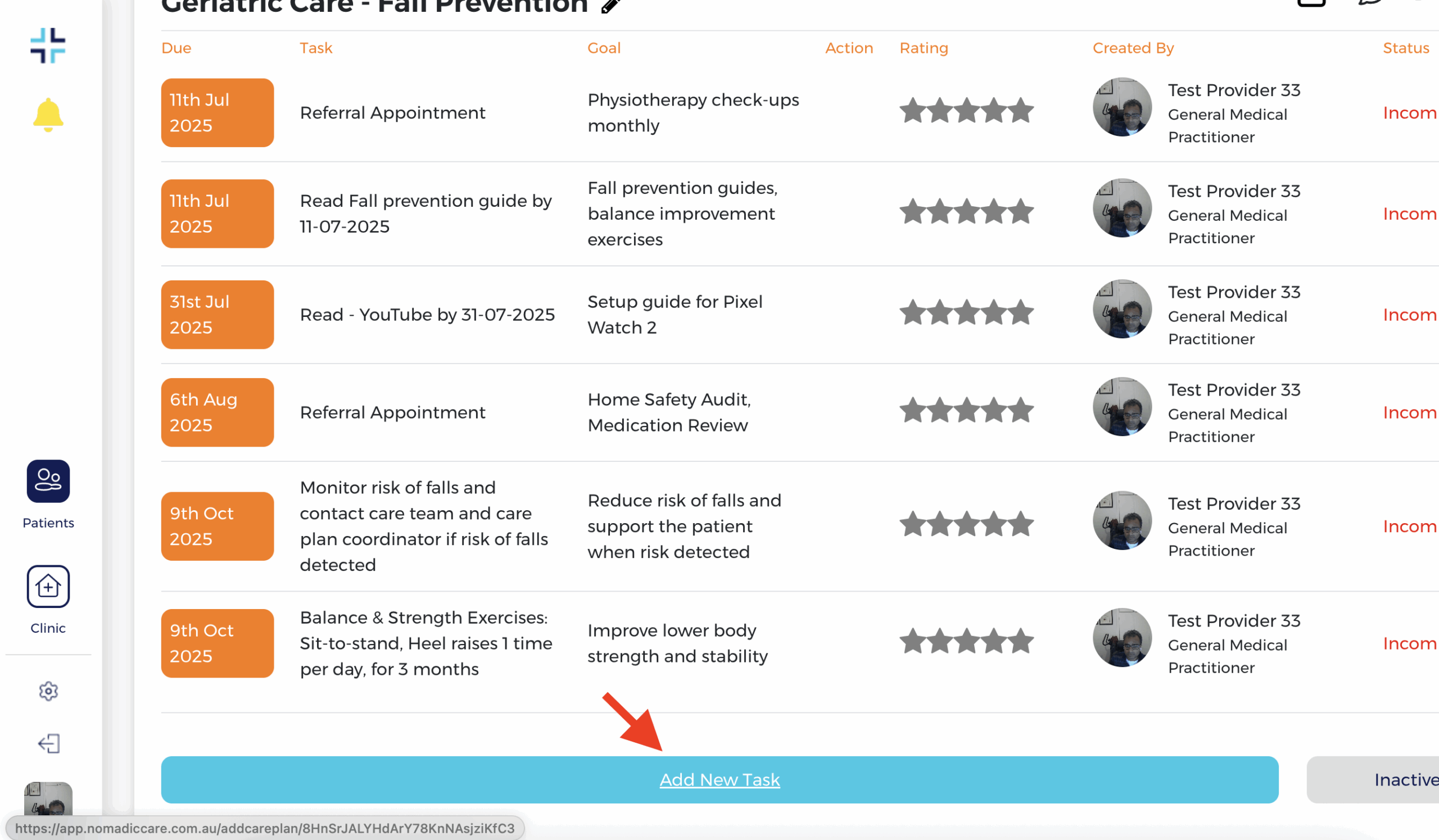 Nomadic Care will show a green icon under the Fall Prevention task.