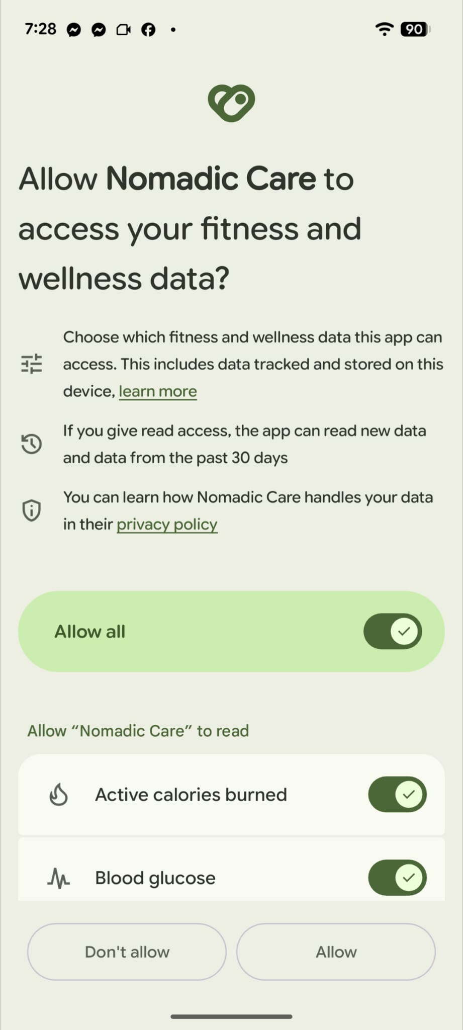 Step 5: Allow Nomadic Care to access health data #