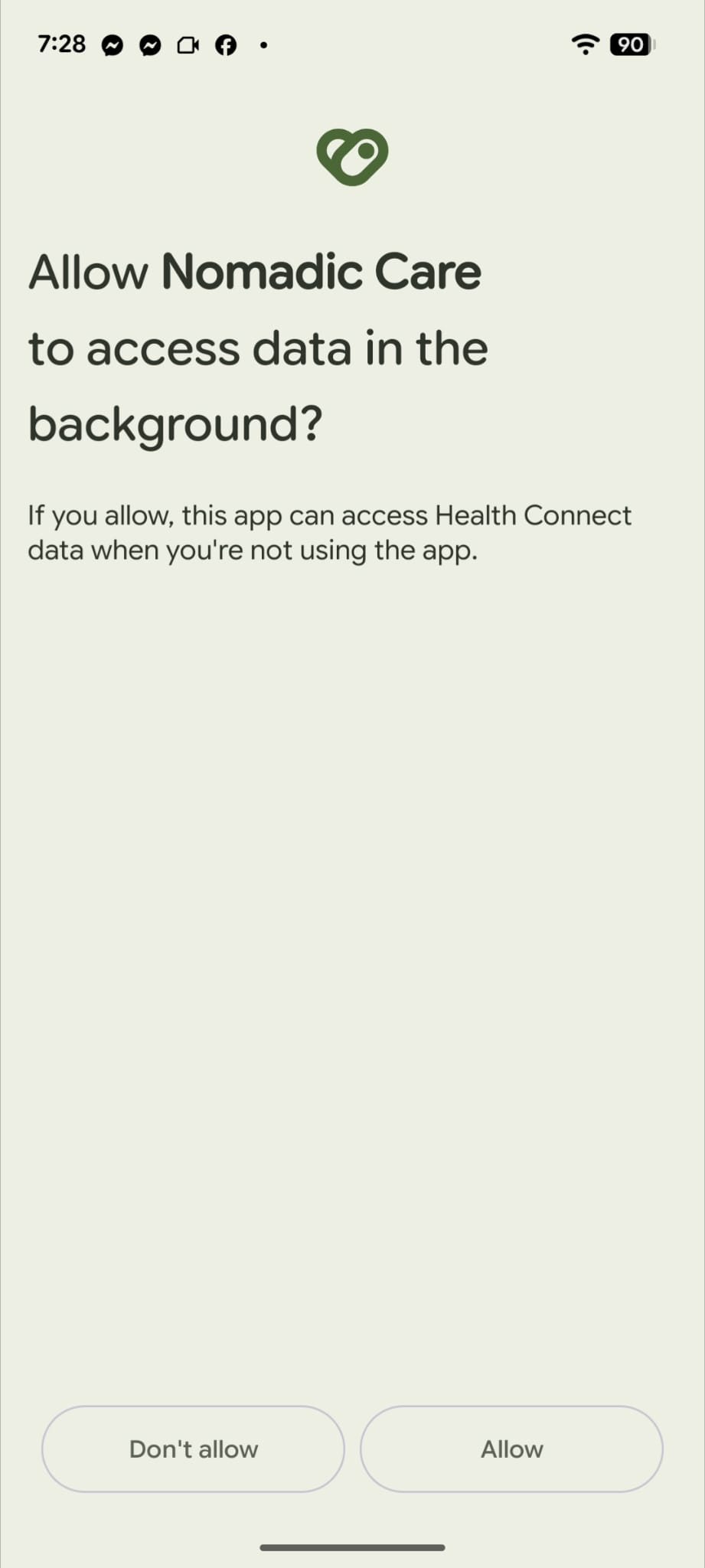 This step ensures your health data syncs into Nomadic Care.