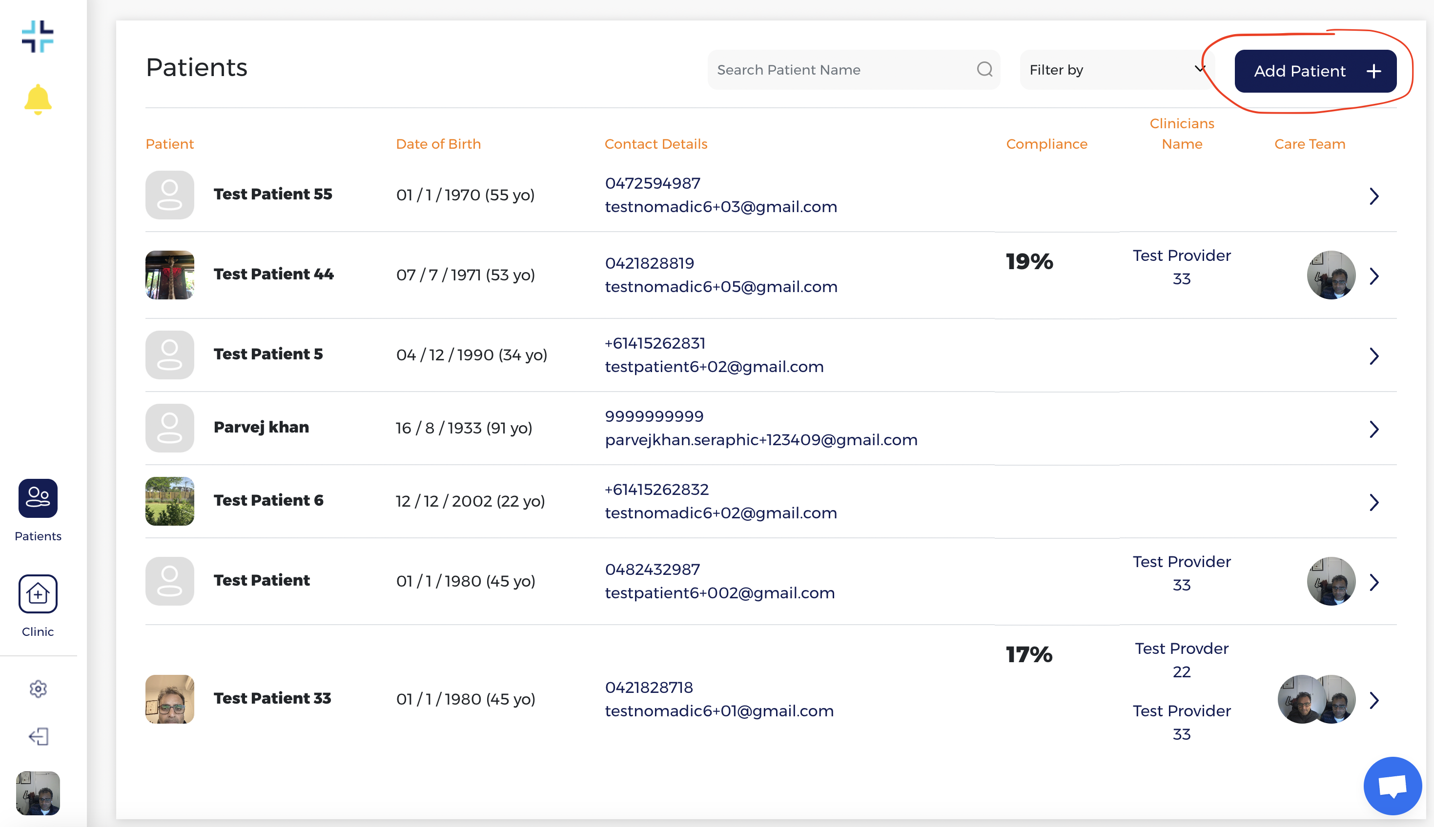 - Navigate to “Patients” > “Add Patient +”