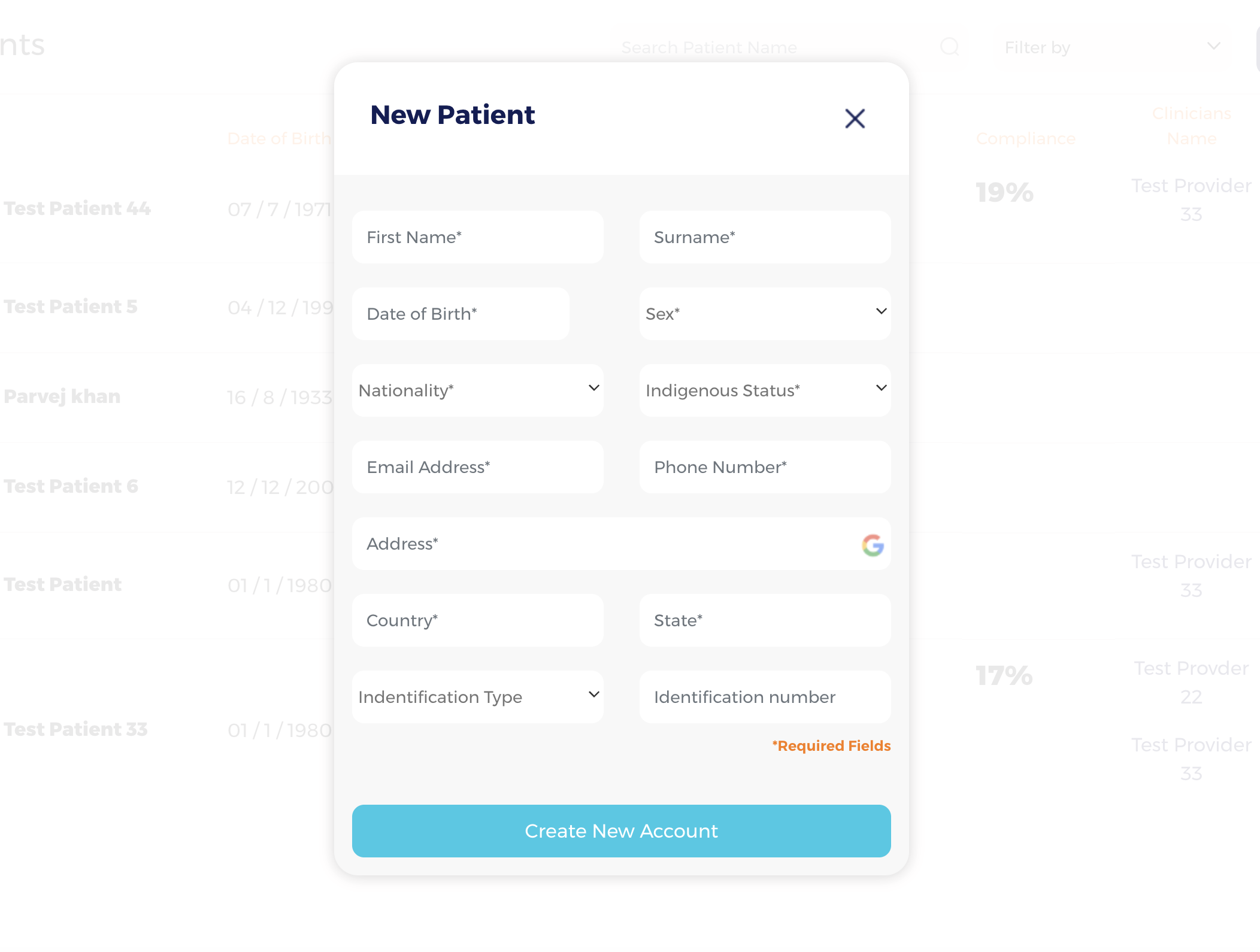 3. If the patient is new to Nomdic Care, then simply click the “Manual Entry” button. The “New Patient” screen will then be displayed, which must be filled out correctly. Please make special care to enter email address and phone number correctly – this will be used by Nomadic Care to engage with the patient.