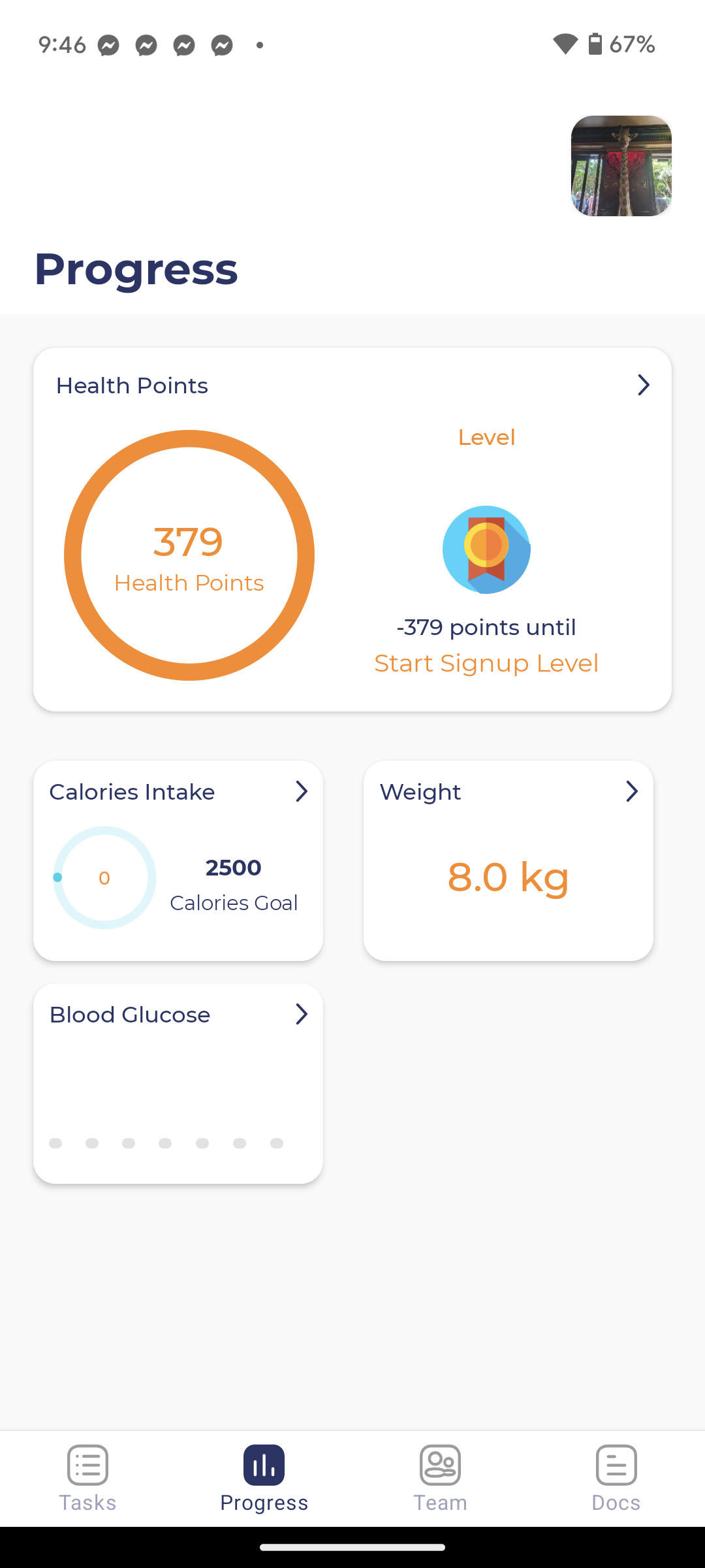 - Health measurements (track progress)