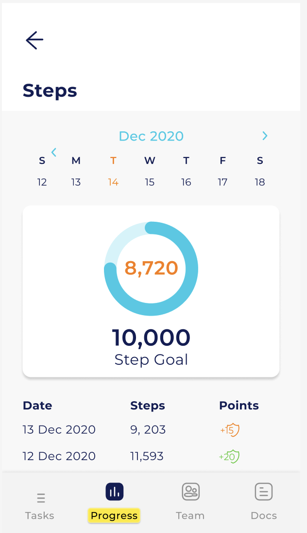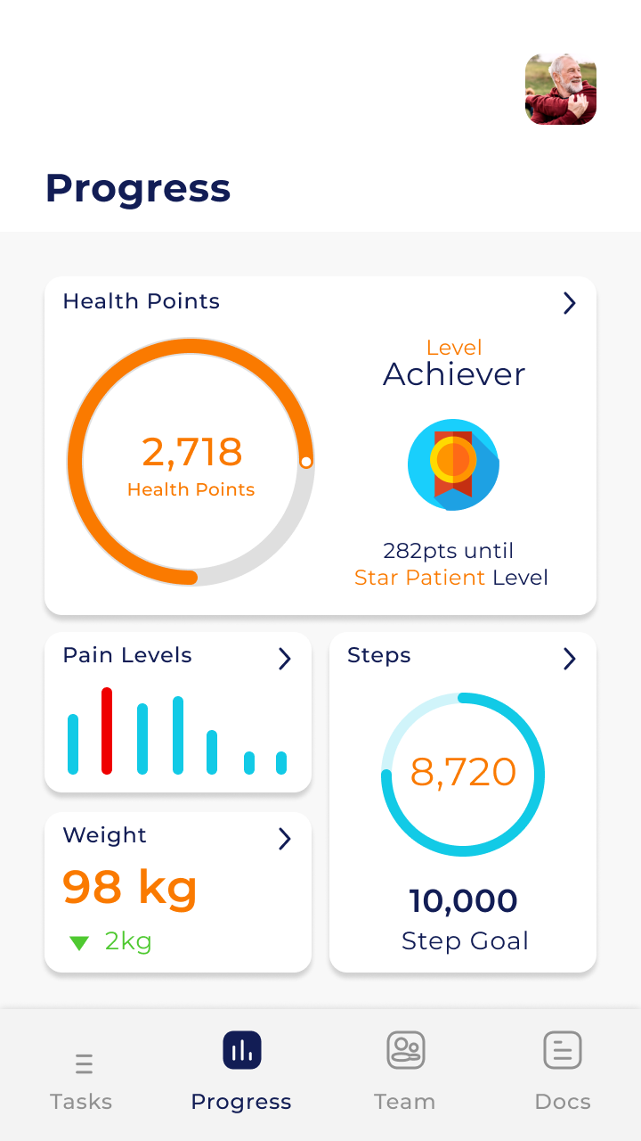 Patients / Clients can also view a summary of how they are doing across all their tasks. This is a useful screen to assure them that they are on track, or if they need some assistance from their primary carer.